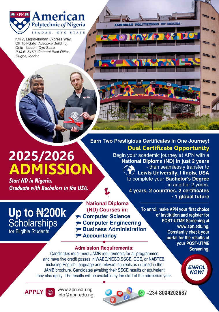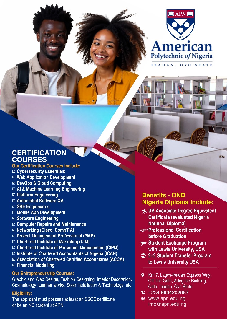 The American Polytechnic of Nigeria is affiliated with the Lewis University, USA, where we run a student exchange program in various fields.Â